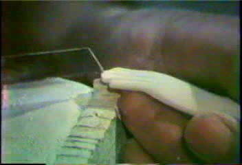 1.桐の木に指となる針金を差し込む。