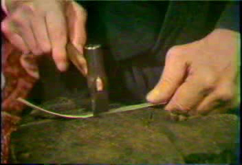 地金から切り出す鍬形に鳥毛模様を打ち出す。
