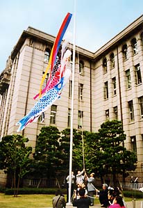 ハッピーマンデーの導入により、ゴールデンウィークという大型連休の中に埋没しつつある「端午の節句」。女の子の桃の節句が今なお「お祭り」としての意味を残しているのに対し、端午の節句は皮肉にも国民の祝日となっているがために、却って祭礼としての意義が忘れられつつあるようです。 男の子の健やかな成長を祈る端午の節句の復権のため、5月5日、京都のまちを鯉のぼりで飾ります。