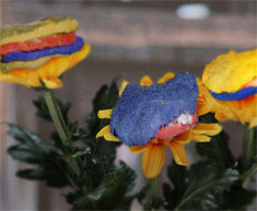 前夜から菊の花に綿をかぶせておくと、明け9日の朝には、綿は露を含んでしっとりしています。その綿で体を拭き浄め、長寿と若返りを願ったものです。「綿」といっても、木綿ではなく、蚕の繭から採った「真綿」でした。それを赤や青や黄に染め、菊に帽子のように被せたのです。確かに、清々しい菊の香りを移した、目にも彩な被綿で体を拭えば、若返るような気がします。