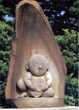 人形塚は、京人形商工業協同組合によって昭和34(1959)年に建立されました。塚には京人形を象徴する愛らしい御所人形が彫り込まれ、その台座には武者小路実篤の詩が寄せられています。